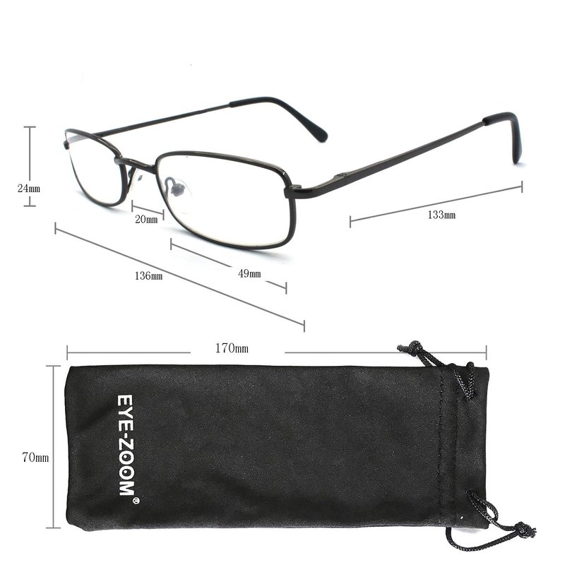 - Product includes the 3 pairs of EYE ZOOM Reading Glasses & 3 pairs of soft pouch. Soft cloth bags can be used to clean the lenses.