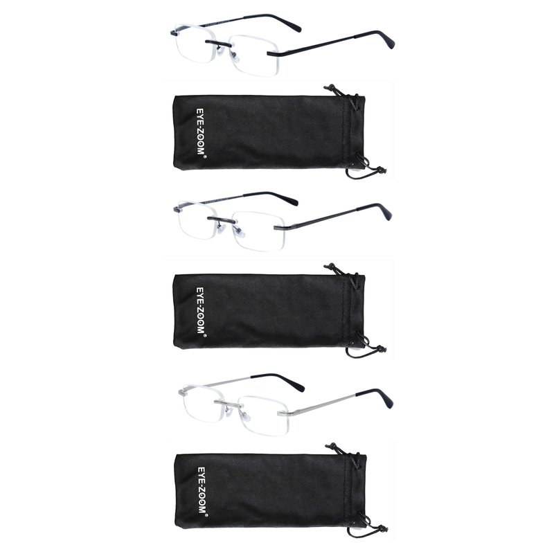 EYE ZOOM 3 pack metal rectangular-shaped rimless reading glasses with soft punch. Vintage lightweight metal no frame readers with spring-hinge, making it more comfortable to wear. Whether you are looking for a light reading glasses for outdoor and indoor. EYEZOOM classic rimless reading glasses will give you the premium protection. Strength available: +1.00 / +1.25 / +1.5 / +1.75 / +2.0 / +2.25 / +2.5 / +2.75 / +3.0 /+3.5. Color available: Black / Gunmetal/ Navy Blue / Silver.