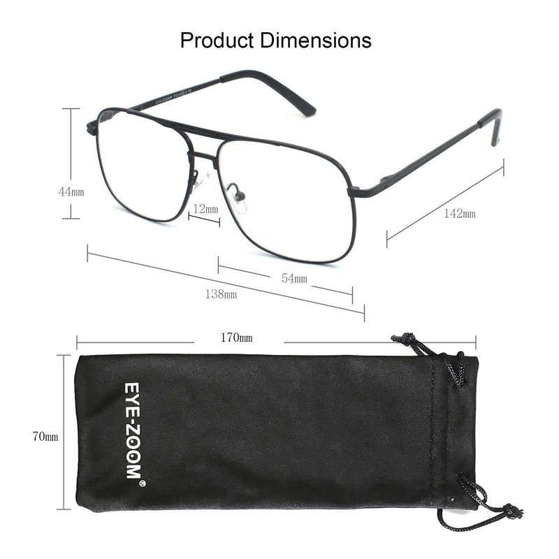 EYE ZOOM men’s high-quality square aviator style metal frame reading glasses. Classic large size frame with spring temples for a more comfortable fit. Scratch-free lenses bring you a clear visual experience. Whether you are looking for men’s big size reading glasses for office or home. EYEZOOM men’s reading glasses will give you the premium protection. They are also perfect gifts to your parents and the elderly. Strength available: +1.00 / +1.25 / +1.5 / +1.75 / +2.0 / +2.25 / +2.5 / +2.75 / +3.0 /+3.5 Color available: Black / Gold / Gunmetal Product includes the one pair of EYE ZOOM reading glasses & 1 pair of soft pouch & 1 pair of clean cloth &1 pair of eyeglasses strap. Care: Please do not use finger or rough cloth to wipe and clean the lens as it may either stain or scratch the lens and reduce the performance of the lens, please use the soft cleaning cloth to gently wipe away dust.