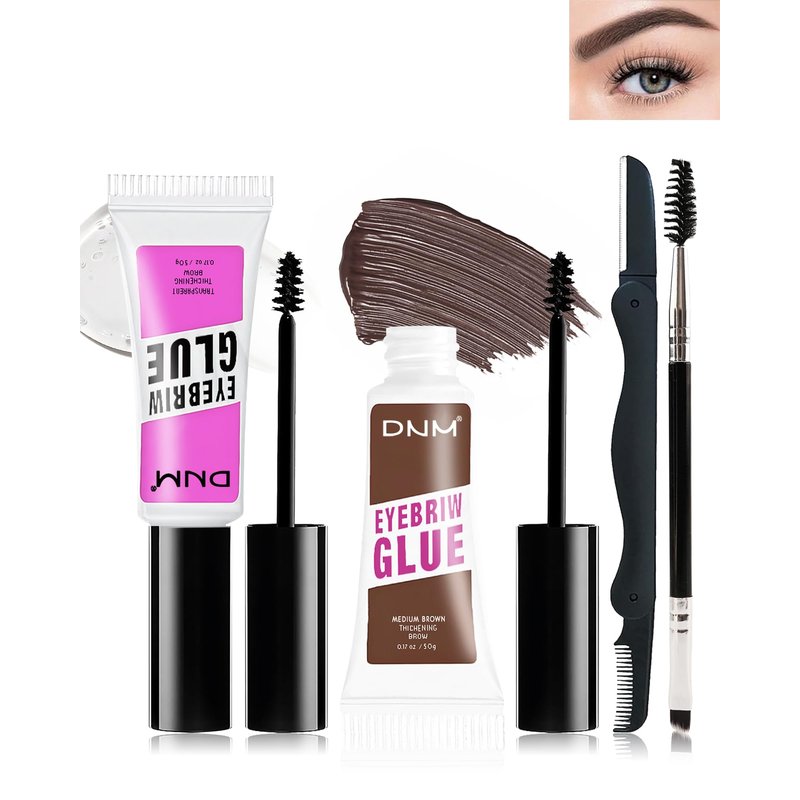 - Tinted Eyebrow Gel Kit - You will get 1Pcs Pcs tinted eyebrow gel and 1Pcs clear eyebrow setting gel, 2Pcs Eyebrow Tools, which will meet your eyebrow trimming needs. Our tinted thickening brow gel is perfect for all types of eyebrows, giving you a natural finish.