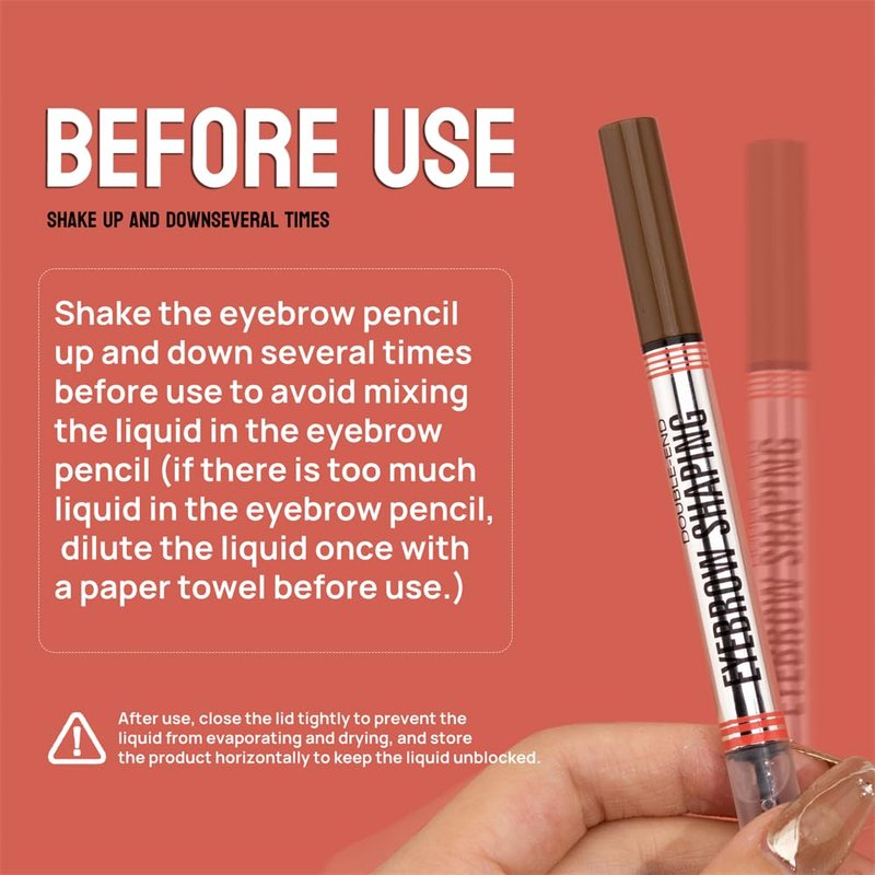 - 【IMPORTANT NOTE 】: Shake the eye brow pencil up and down several times before use. When NOT in use, always keep the cap TIGHT! Make sure you hear the click when CLOSING it! Store the pen flat to ensure the tip can't dry out! clean your eyebrow pencil tip before use to avoid the tip getting clogged by lotions.