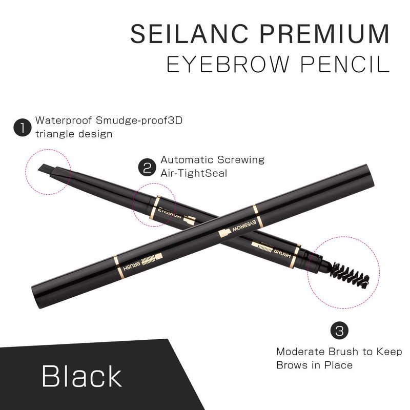 Eyebrow Pencil 2 Packs, Waterproof Smudge-Proof Brow Pencil with Brow Brush, Automatic Eye Brow Makeup Kit, Black1