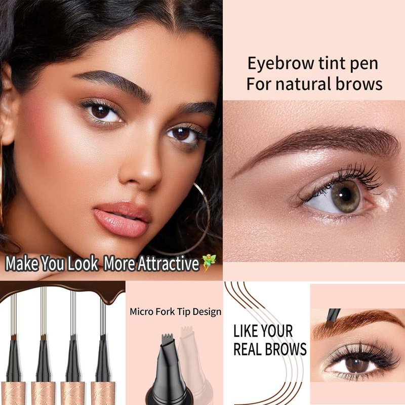 - ❤️QUICK MAKEUP : Easy to Use & Multi-Function, you can easily achieve perfect brows with this 4 point eyebrow pen and save your time. Gently paint the outline of the eyebrows with a pen, and continue to draw the last step along the shape of the eyebrows to create vivid and natural eyebrows. Also you can use it for filling hairline, eyelashes and beard.