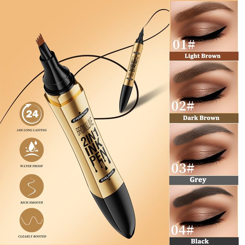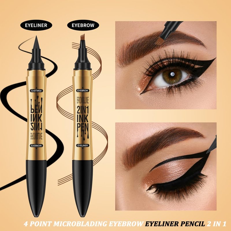 - 【MAGICAL DUAL-ENDED BROW PEN】This 2 in 1 double ended eyebrow pencil has precise ultra-fine brush tip to create tiny hair-like strokes for natural finish. 4 point microblading brow applicator for shading, filling in sparse brow areas and blend color into brows. Another tip can draw eyeliner smoothly, very easy to control.