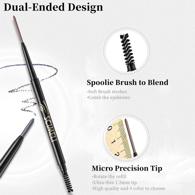 - 【Innovative Dual-Ended Design】1.5mm microblading eyebrow pencil can draw precise ultra-fine lines,lests you easily shape,define and fill your eyebrows.Built in spoolie brush help to blend in color for natural looing brows.