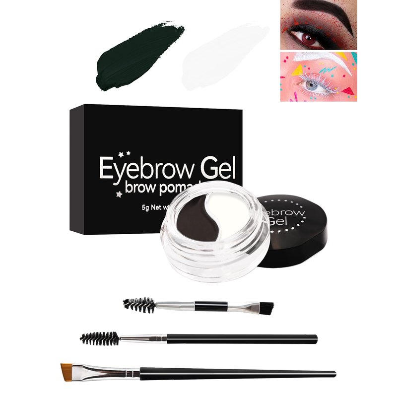 Eyebrow Pomade Brow Gel,2-in-1 Black&White Eyebrow Color with Brushes,Long-Lasting Waterproof High Pigment Cream Eyebrow Pen Pomade Eyeliner,Tinted Brow Gel Eyebrows Shape Filler Makeup for Women-10