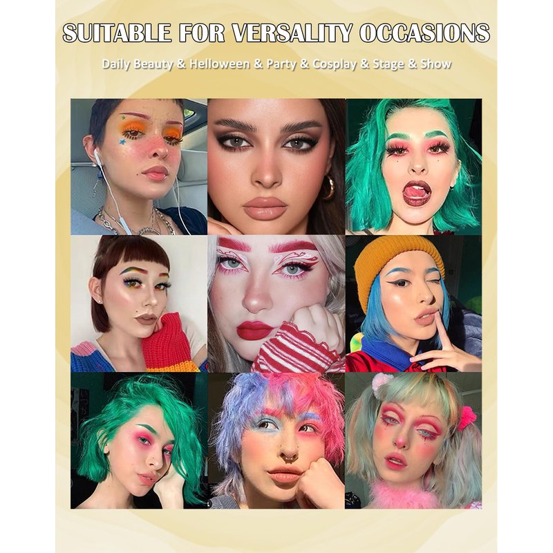 - 2 COLORS EYEBROW POMADE ALL IN 1 DESIGN - The design of combining two different colors of Eyebrow Pomade in the same jar is super convenient. With the complimentary eyebrow brushes, it is easy to create beautiful eyebrows. 6 popular colors of eyebrow pomade with clear eyebrow setting gel, which are suitable for your daily makeup. 7 bold colors of eyebrow pomade for your cosplay. Multi colors of eyebrow creams to meet all your eyebrow makeup needs.