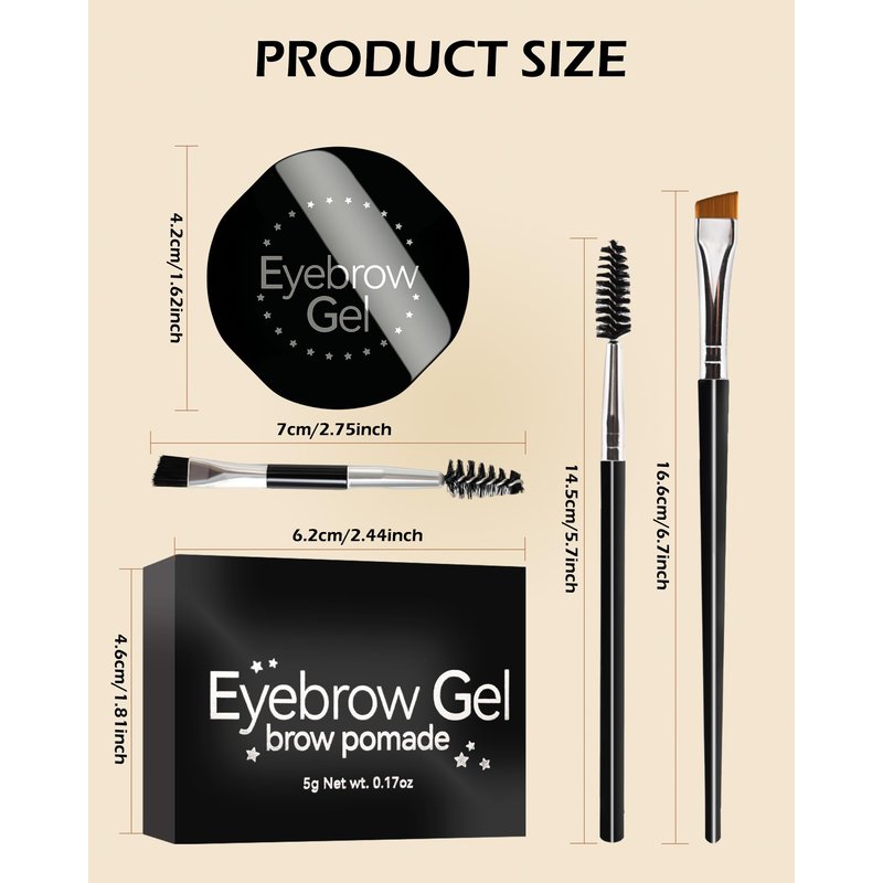 - HIGH-PIGMENTED - The eyebrow pomade gel is exquisite and full pigmented, and it is easy to apply for its strong adhesion. This product is not only suitable to be used as eyebrow, but also suitable to be used as eyeliner. It comes with 3 different brushes, easy to create beautiful eyebrows and eyeliners.