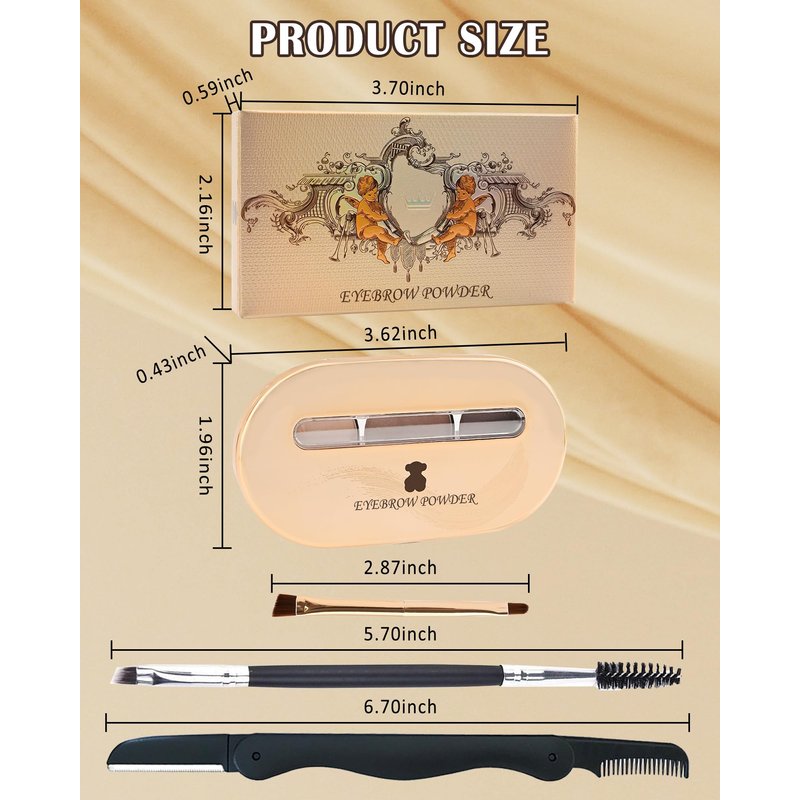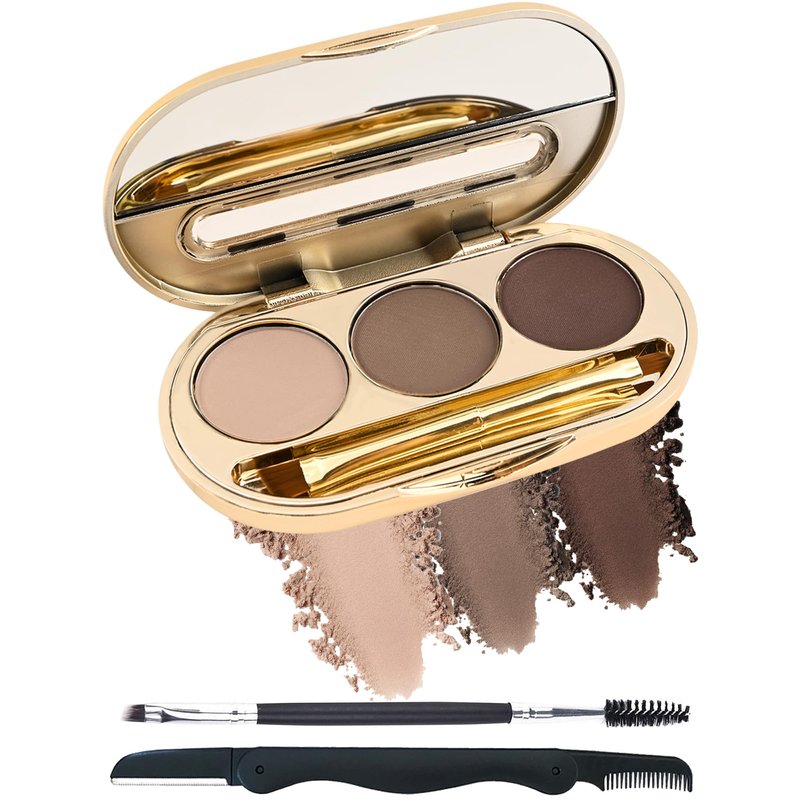 - Eyebrow Tinting Powder Kit - You'll get a 3-color brow powder palette with mini brow brush, 1 dual-ended brow brush and 1 dual-ended brow shaper. This brow makeup kit comes in a beautiful box and each palette has three colors to choose from to help you create natural, shapely brows.