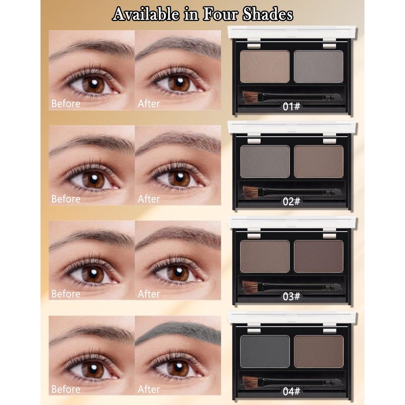 - 2 In 1 Eyebrow Powder Palette - You will get a 2-color eyebrow powder palette with mini brush,1 pcs double head brow brush and 1pcs double brow razor. Our eyebrow powder palettes with 2 series colors that bring together the most commonly used and popular combinations to choose from. Multiple shades of eyebrow powder fill in and define eyebrows, thickening sparse eyebrows. You can mix and match different colors to create the perfect eyebrows that suit your skin tone and your overall makeup.