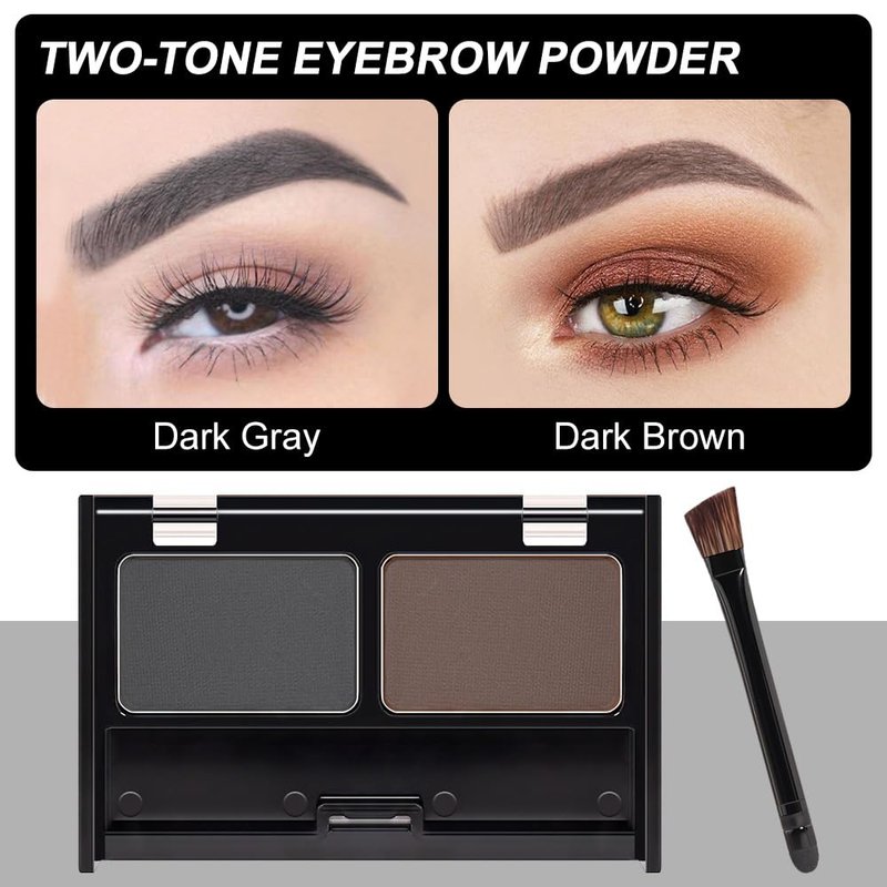 Eyebrow Powder Kit,Eye Brow Powder for Women Long-Lasting Waterproof Two Colors Brow Filler Get Full Defined Natural Brows,Eye Brow Contour Palette with Double-ended Eyebrow Brush-Dark Brown+Dark Gray