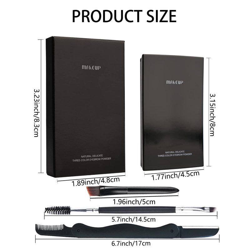 - WHAT WILL YOU GET - You will get a 3-color eyebrow powder palette with mini brush,1 Pcs double head brow brush and 1Pcs double brow razor. This eyebrow makeup kit can help you create a natural, sculpted eyebrow look.