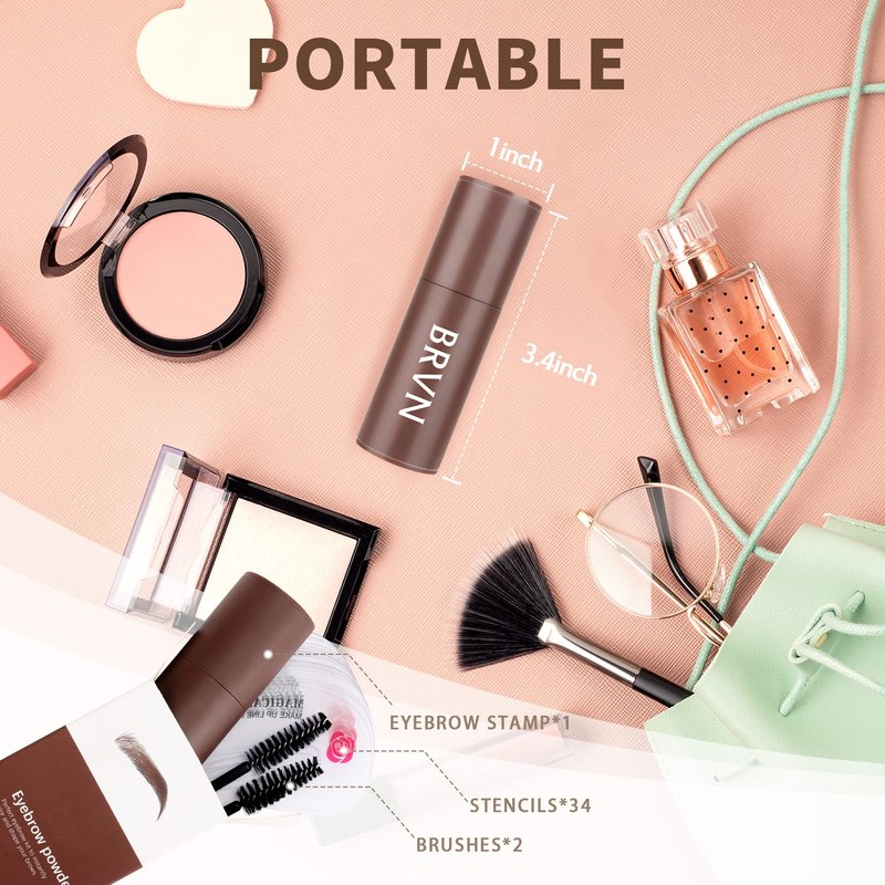 - 【EASY TO USE & PORTABLE】- No need of skills and experience,BRVN eyebrow stamp is so easy to use,even novices can easily get flawless eyebrow shape in a few seconds,moreover,the brow stamp and shaping kit has a portable and lightweight body,easy to carry like a lipstick