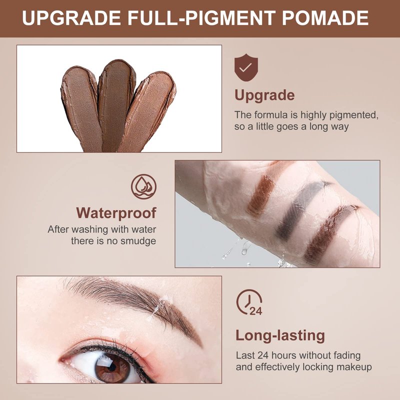 - Waterproof & Sweatproof: Our brow pomade keeps your eyebrow makeup stay all day with no smudge, no transfer and sweat resistant until you are ready to remove it with makeup remover. A perfect gift for your friends, family and yourself