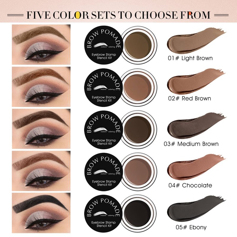 - 【Eyebrow Stamp Stencil Kit】- The kit includes everything you need to create a strong brow: 10 popular eyebrow stencils, 1 waterproof eyebrow pomade, 1 sponge applicator, 1 spoolie/angled brow brush. It only takes a few seconds to create bushy and natural eyebrows, perfect for beginners and ladies who are not good at makeup.