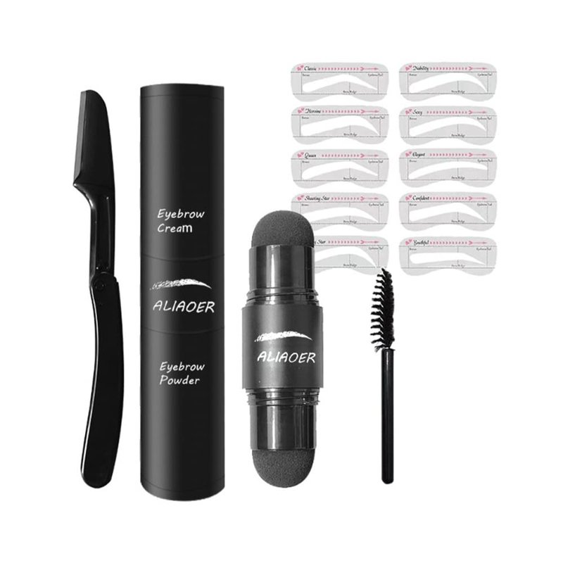 With the double-ended design, the powder can be applied to the eyebrows or filled in the hairline, while the brow paste can be applied to just the eyebrows, allowing you to use two things in one. Easy to apply: our products are easy to apply the colours used by our friends. Easy to handle, shape your eyebrows to our specifications and create a different self every day. Suitable for many occasions: the various brow cards are suitable for work, travel, birthday parties, holidays and more. Plus, the durable mushroom head is long lasting and professional quality, you don't have to worry about it falling off. Packaging. Eyebrow pencil*1 Eyebrow brush*1 Reusable eyebrow pencil*10 Eyebrow trimmer*1 How to use the eyebrow pencil Step 1: Choose the right version of the eyebrow and align it to the desired position according to the grid line. Step 2: Starting at the end, dot the eyebrow markers on the vacant part of the stencil Trim the eyebrows until you get the desired effect. Step 3: Wipe off the powder from the stencil. Step 4: Turn the brow stencil over and repeat the steps above on the other brow.
