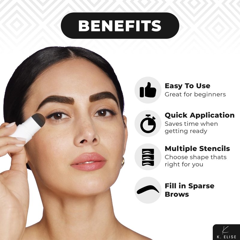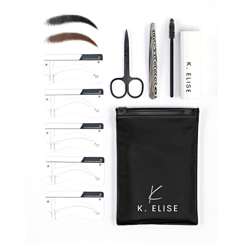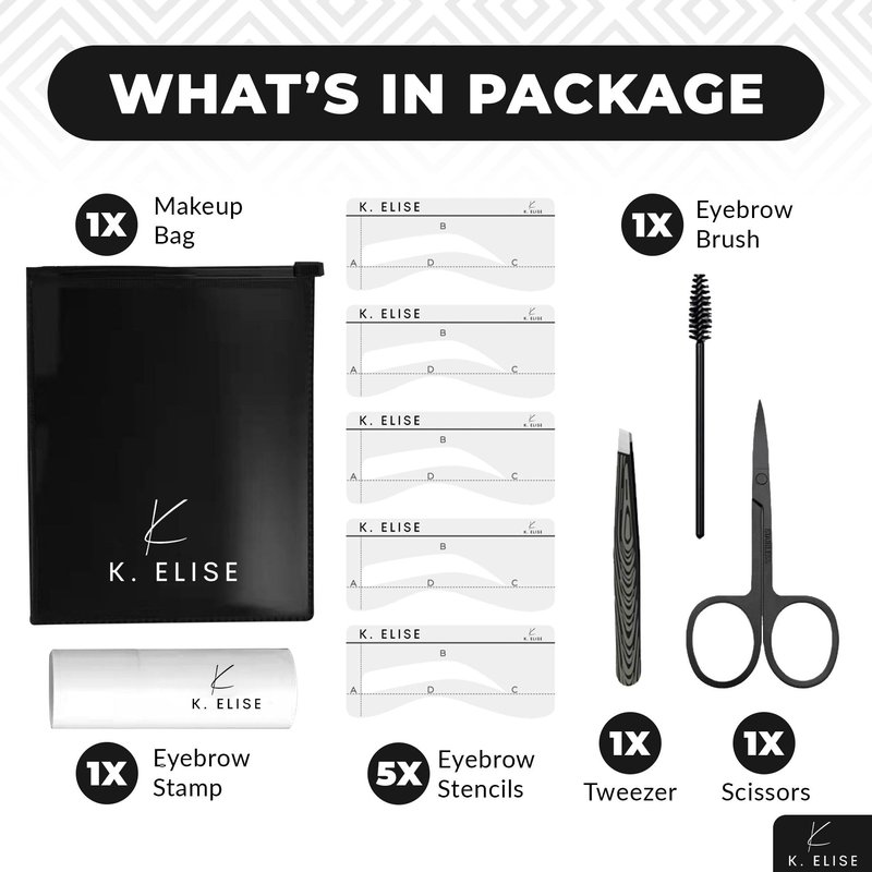 - Eyebrow Stamp Stencil Kit w/Free Eyebrow Shaping Tweezer, Spoolie and Scissors Included| Perfect Eyebrow Stencil Kit for One Step Eyebrow Shaping | Waterproof and Long Lasting Powder Finish (Black)