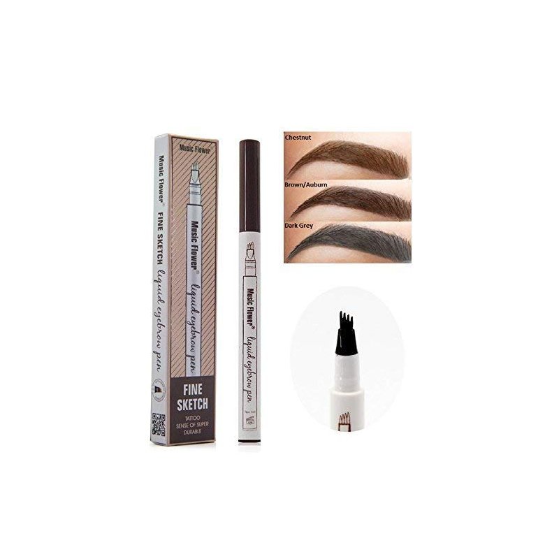 Eyebrow Tattoo Pen, Waterproof brow Ink Gel Tint Four Tips, Long Lasting Hair-Like eybrow best eyebrow filler Microblading 3D Fork Tip - Pack of 1, Dark Grey