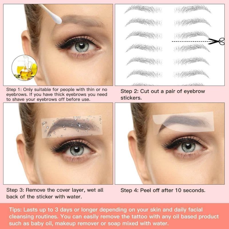 - 🌸4D HAIR-LIKE & NATURAL STROKES - Incredibly detailed and realistic-looking, our eyebrow tattoos peel off instantly create natural and full eyebrows with your ideal shape. Easily adjust our brows for your perfect color match with your favorite eyeshadow or brow pencil.