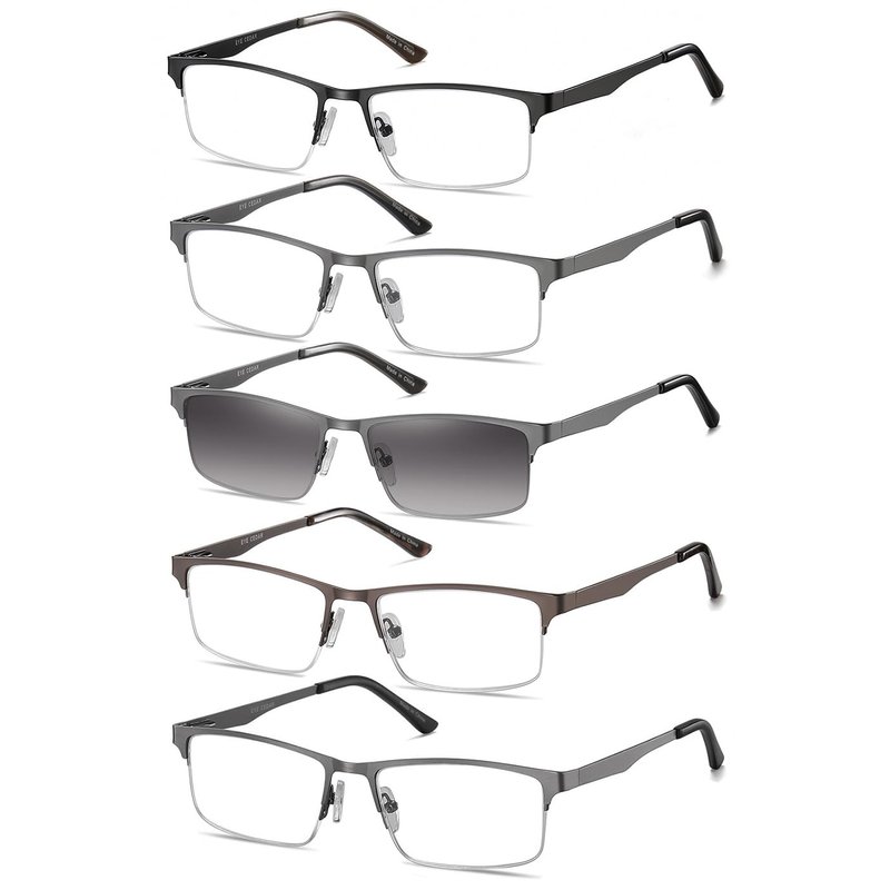 EYECEDAR 5-Pack Reading Glasses for Men Rectangular Metal Half-Frame Spring Hinges with Sun Readers Glasses Mens Readers 2.5