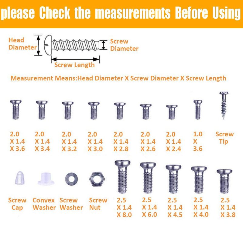 - 【Convenience】 All the accessories are well packed in a transparent box to keep them in order. The size information is stick under the case and you can find the size you need easily and quickly, and use the tweezer to pick out the screws