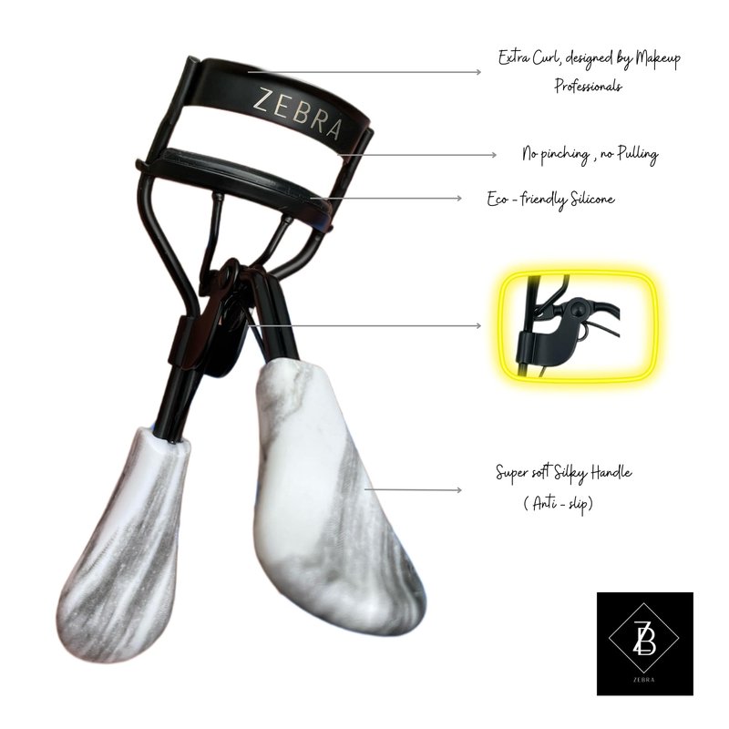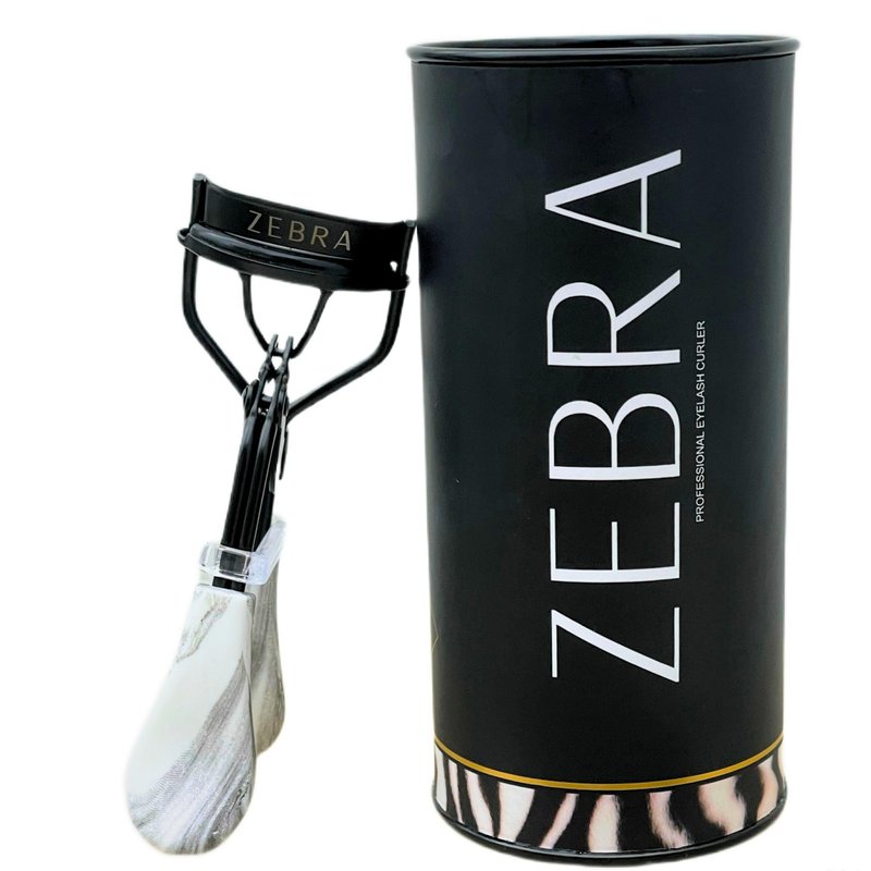 Eyelash Curler Pro, Zebra Design, Container Packaging for Makeup tools, Precision Curling, Long Lasting Volume, No Pinching, Soft Handle, Professional Beauty.