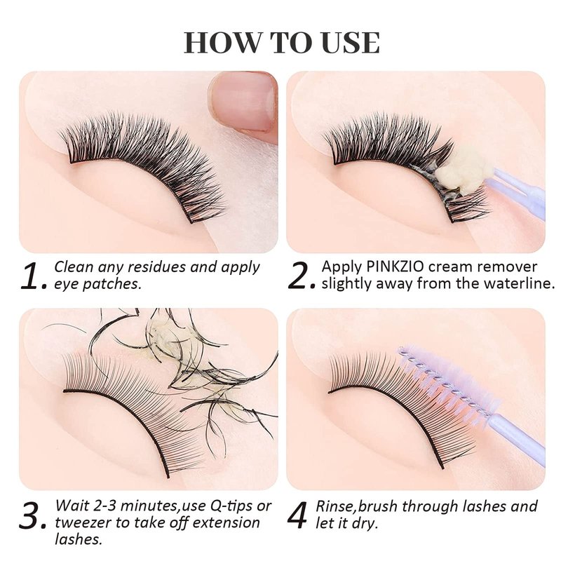 - 【Upgrade & Safe Formulated in Japan】PINKZIO lash glue remover cream has new super active power formula from Japan. We have strict quality control and regular review systems to provide you the best reliable and quality eyelash extension products.The cream remover is easy to control without running into your eyes.Only a small amount of lash remover is needed to remove any eyelash extensions.