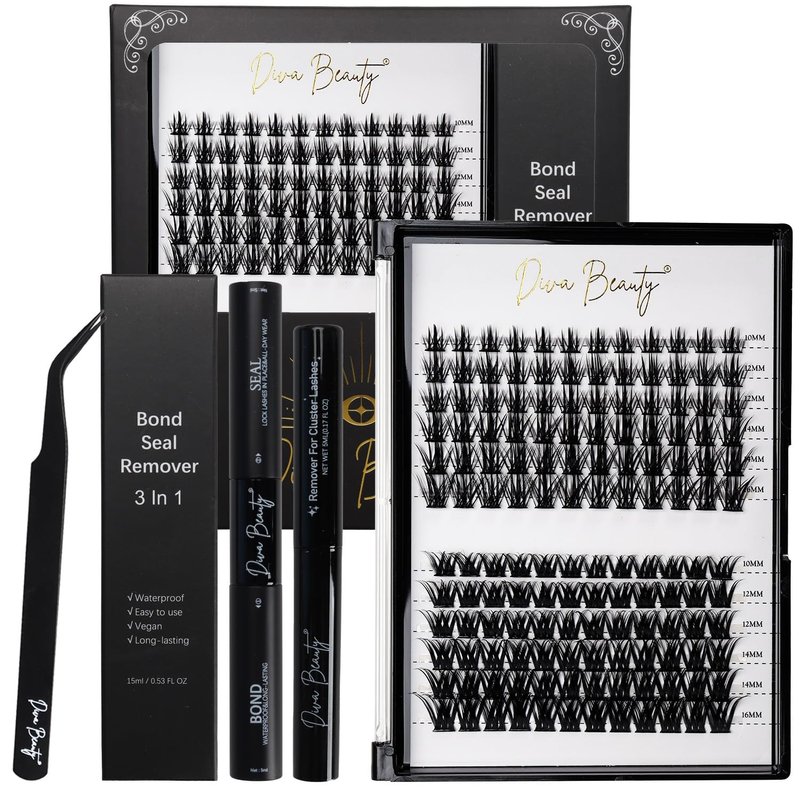 - [Individual lashes Cluster] Elevate your lash game with our Cluster Lash Extension Kit, thoughtfully curated to enhance your natural beauty. This comprehensive kit comprises a generous selection of individual lash clusters, offering a total of 156 meticulously crafted pieces in various sizes. Alongside this, you'll find precision tweezers for seamless application, a gentle lash remover for hassle-free maintenance, and our premium lash Bond and Seal for a long-lasting, flawless finish.