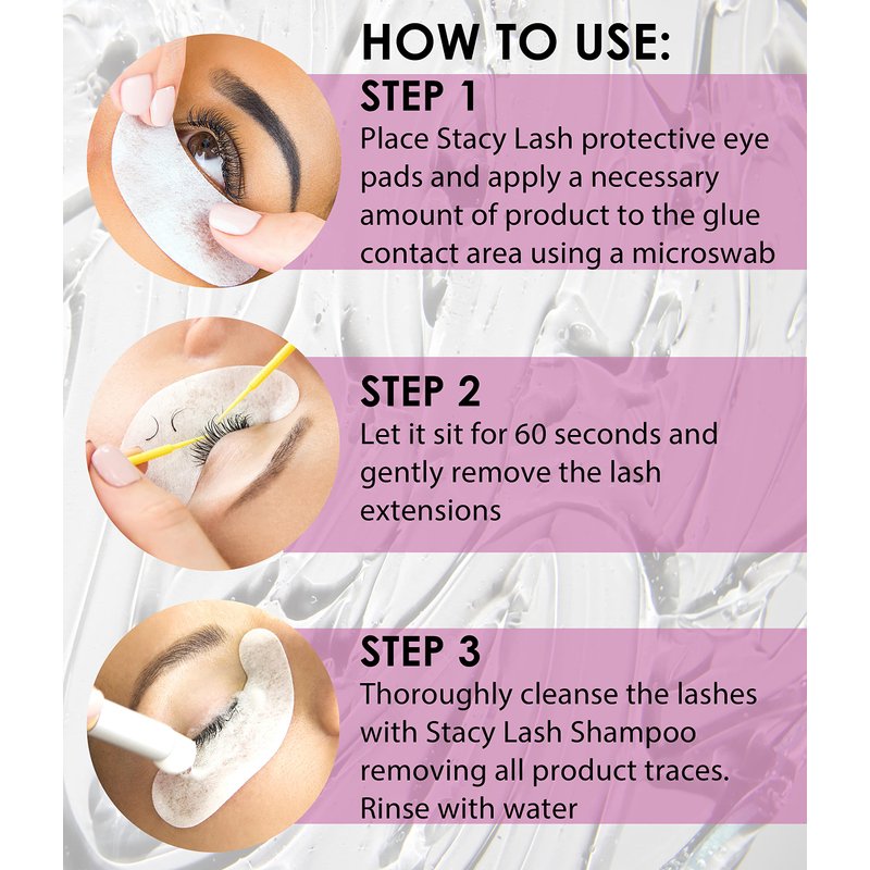 - This adhesive remover for lash extensions is suitable for beginners and skilled eyelash technicians. It works quick, but it’s easy to control, preventing eye contact. Suitable for all skill levels.