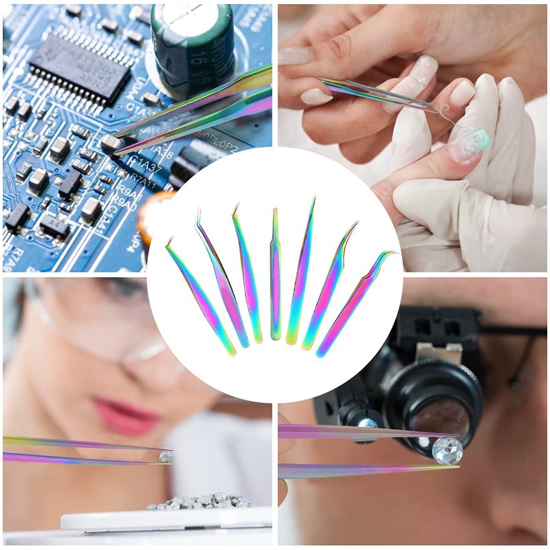 Designed for multiple precision jobs, which can be used for eyebrow plucking, eyelash extension, cosmetic hair removal splinter removal, nail art sticker picking or craft, jewelry, laboratory work and other jobs.