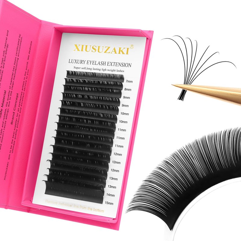 XIUSUZAKI is mainly engaged in eyelash extensions and related products.In order to meet women's demand for eyelash quality, material and style, XIUSUZAKI has applied for several exclusive patents and developed new manufacturing technologies during more than 10 years of continuous research and innovation.Why choose us? As an outstanding brand in the beauty industry, sells well in 100+ countries around the world.Our Core ValuesTo be creative, To be simple.We are dedicated to using premium materials and craftsmanship to create safe, comfortable, and naturally realistic false eyelashes. XIUSUZAKI 3D W Premade Fans Eyelash ExtensionsUse Eye Patches cover bottom eyelashes to prevent from lashes with other.Clean eyelashes with Lash Primer before the procedure.Drip 1-17 drops glue on lash tile.Use one tweezers separate the natural lash, another tweezers to hold the eyelash extension tip,and dip the end into the glue,then apply on the natural lash. Use Air blower to dry the glue. Apply coating sealant to keep lashes longer and comb the lashes to get the perfect appearance.Let's create beauty togetherXIUSUZAKI aim to help every girls become more charming. Whatever one's age, it's always deserved to maintain the best living conditions.When you bright eyes were flashing with happiness and passion, it's the most romantic thing in the word to XIUSUZAKI. We hope you enjoy the beauty while health, comfort.