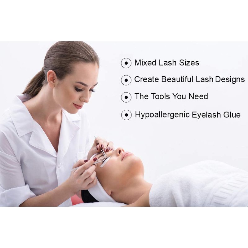 Eyelash Extensions C Curl 8mm Mixed Single Mink Lash Tray With Eyelash Glue and Tweezer, supplies Individual Eyelashes Salon Use Black Mink False Lashes