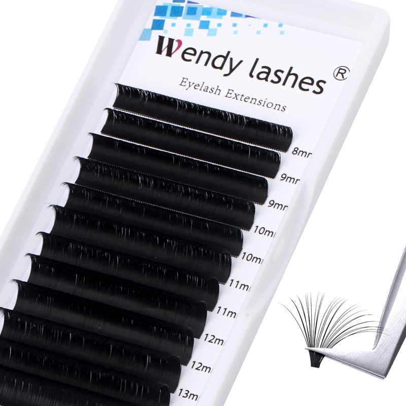 Eyelash Extensions Easy Fan Volume Lashes 0.05mm Rapid Blooming Eyelash Extensions C/D Curl 8-14mm Mixed Self Fanning Lashes By WENDY LASHES(0.05-D, 8-14mm)