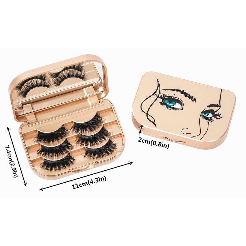 Product Description: Color: Champion Gold Product name: Eyelash storage box Size: about 110x74x20 mm Weight: about 85g Material: ABS plastic Packing: 1 eyelash storage box, 1 pcs eyelash tweezers,6 pairs magnetic strips (not including false eyelashes) Small and portable, it can accommodate 3 pairs of eyelashes, to meet your needs, easy to carry and use, easy to put in the bag, and go out with peace of mind. The multi-purpose eyelash box can store not only ordinary false eyelashes, but also magnetic false eyelashes. We provide a magnetic strip kit, you can stick the magnetic strip in the magnetic eyelash case. Notice: Due to different displays and lighting effects, the actual color may be slightly different from the picture color. There is a protective film on the mirror, please tear off the protective film on the mirror when using it.