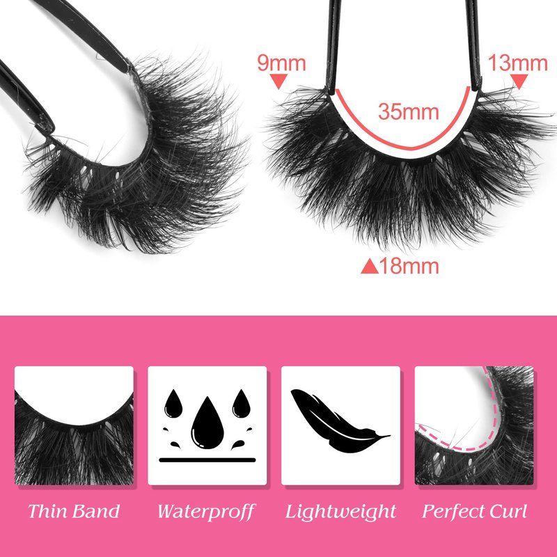 - 【Fluffy Dramatic Eyelashes】: Thick volume faux mink eyelashes, fluffy and full lashes can naturally enlarge the eyes and are suitable for most eye types!