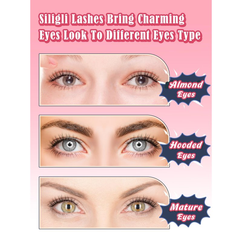 - Eyelashes Wispy Design: Length: 5 mm - 12 mm, glasses friendly. Siligli false eyelashes offers a flirty cat-eye effect, brightening and adding allure to the eyes
