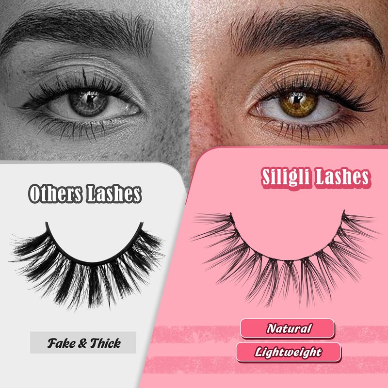 Siligli's wispy eyelashes feature an ultra-thin cotton black band for a seamless, natural look, perfect for day-to-day use. Utilizing superfine fibers, these lightweight and soft lashes are incredibly flexible and beginner-friendly. The vegan and reusable 7-pair lash pack offers cruelty-free, skin-friendly beauty without compromising comfort. Elevate your look with Siligli today!