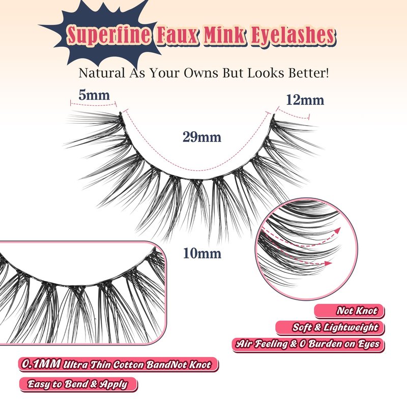 - Ultra-thin Cotton Band Cat Eye Lashes: 0.1 mm black cotton lash band, seamlessly blends with natural lashes and keep well on, providing a comfortable and lightweight wearing experience, beginner friendly