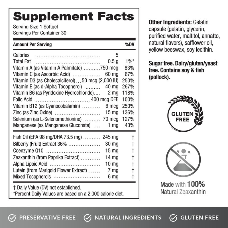 EyePromise Screen Shield All-in-One Eye Vitamin | Omega–3 Fish Oil, Bilberry, Lutein, Zeaxanthin, Vitamins A, C, B12, Zinc | 30 One-A-Day, Easy-Swallow Softgel Capsules