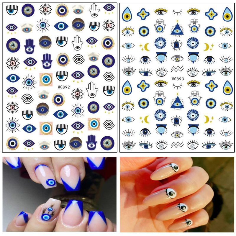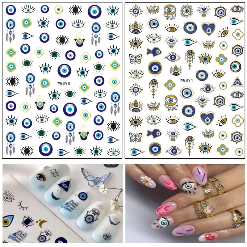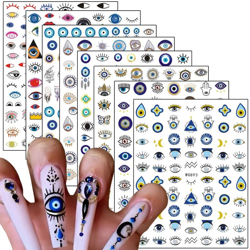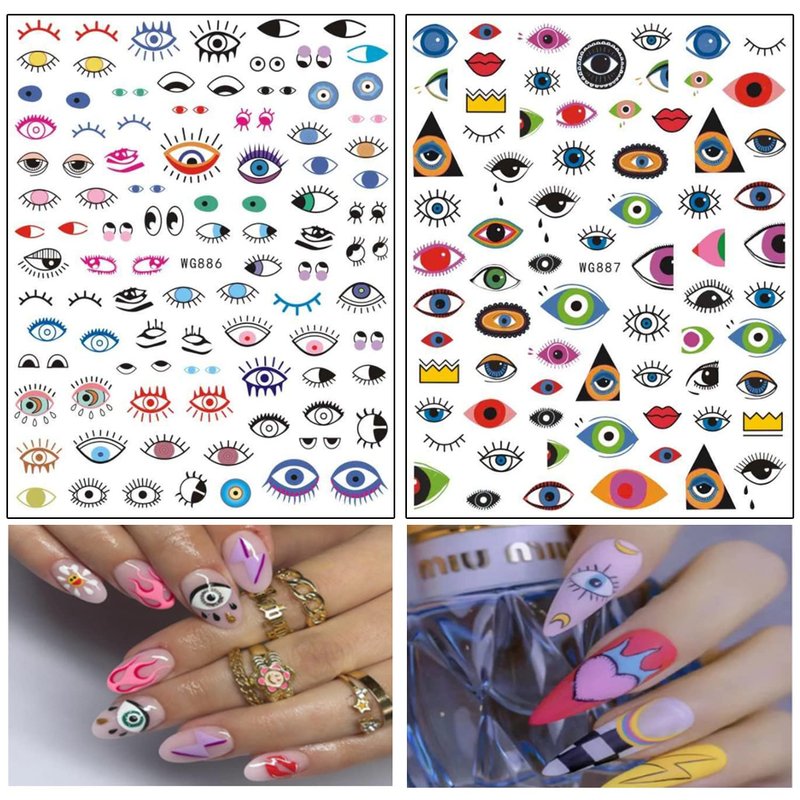 - 【Quantity】 8 Sheets eye nail art decals, each paper measures 4.1 x 3.1 inches(10.3 x 8 cm). Nail stickers contain various shapes of eye patterns. You can decorate your own unique nail art.