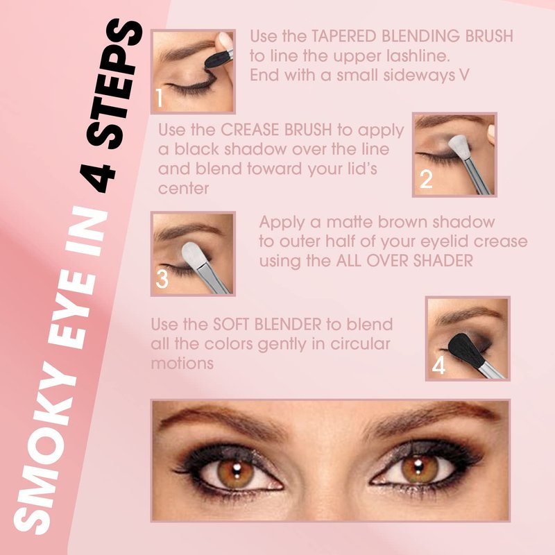 - DISTINCT PURPOSE - Grab your essential eye makeup brush set to create the perfect smoky eye look or any eye makeup application. All eye brushes were assembled by hand and extensively tested. We hand-picked the most important eye makeup blending brushes to serve a distinct makeup purpose to make sure you have all brushes needed to create your perfect eye makeup look. ORDER NOW!