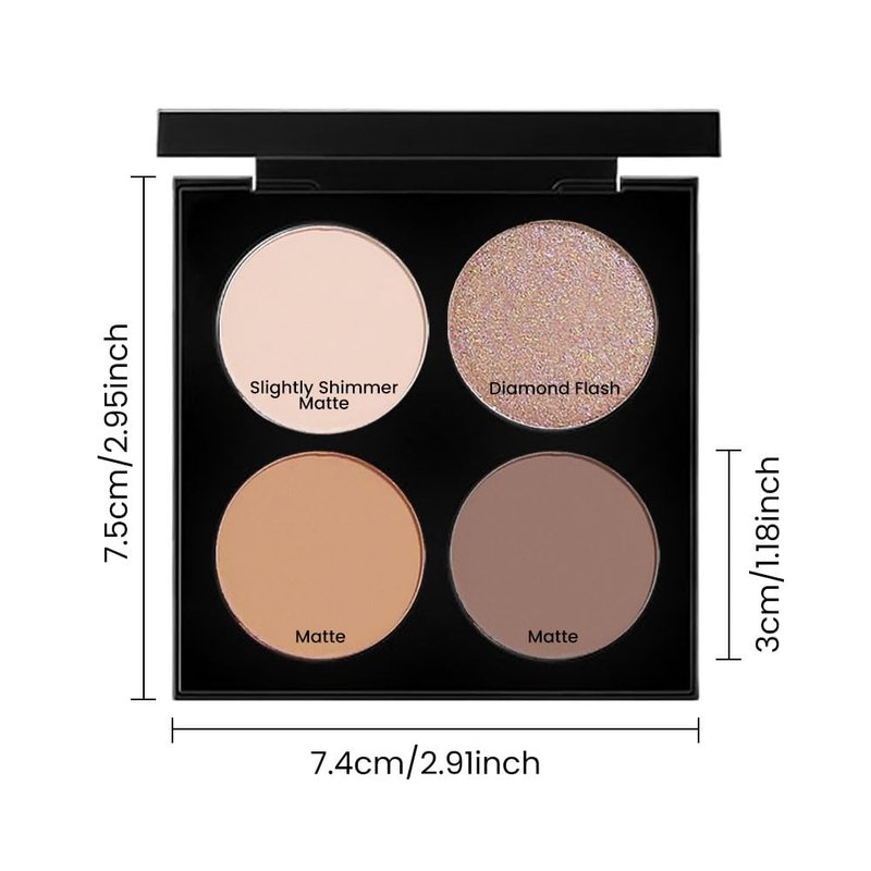 Eyeshadow Quad Makeup Palette, Bright Nude Champagne Gold Light Dark Brown Eyeshadow, Velvety Pigmented Blendable Matte & Shimmer Finishes, Long Lasting Waterproof,Featuring A Built-In Mirror