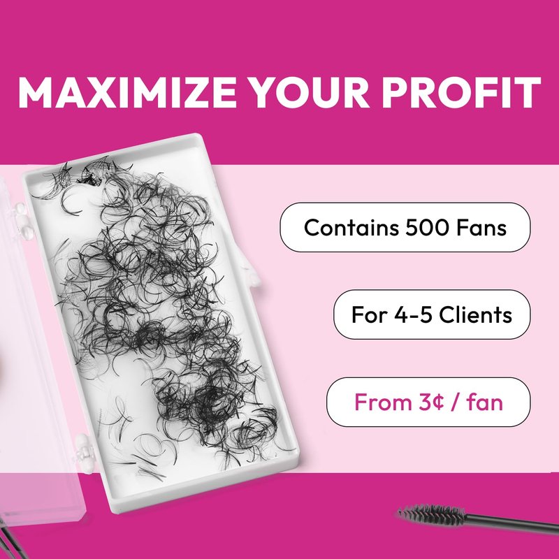 2. Save time by getting a dense and spiky finish in the same amount of time as a classic set. Instead of using two boxes of premade fans and wispy spikes, you just need 1 box of wispy fans to create an outstandingly spiky look that no other lash fans can do.