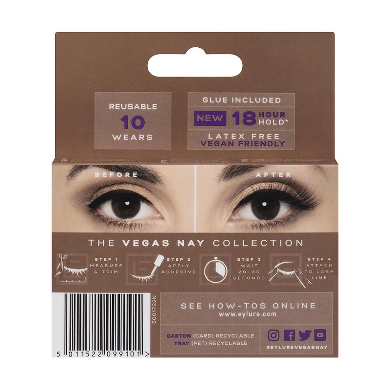 Eylure Vegas Nay Bronze Beauty False Eyelashes, Reusable, Adhesive Included, 1 Pair, Cruelty Free