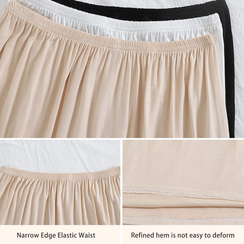 - 【Silky Premium Fabric】Our half slip shorts are made of premium fabric, 95% Modal cotton, 5% Spandex. These shorts are soft, breathable and have good stretch. The texture is very comfortable to wear, the texture is light and does not curl.
