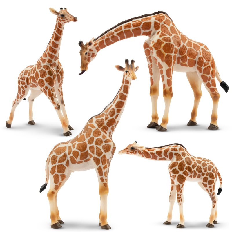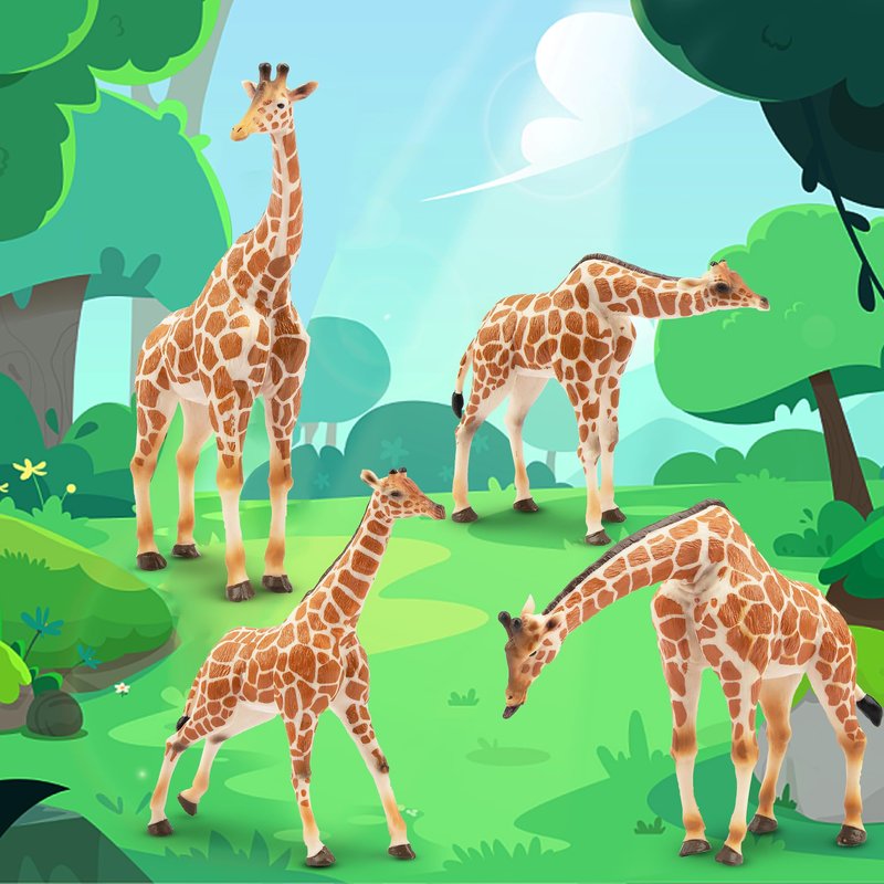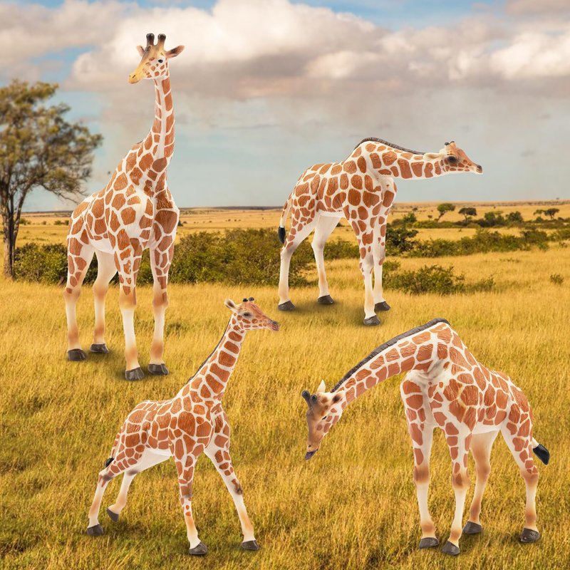 -Package contains: 1 adult giraffe (dad) + 1 adult giraffe (mom) + 2 giraffe cubs (kids)