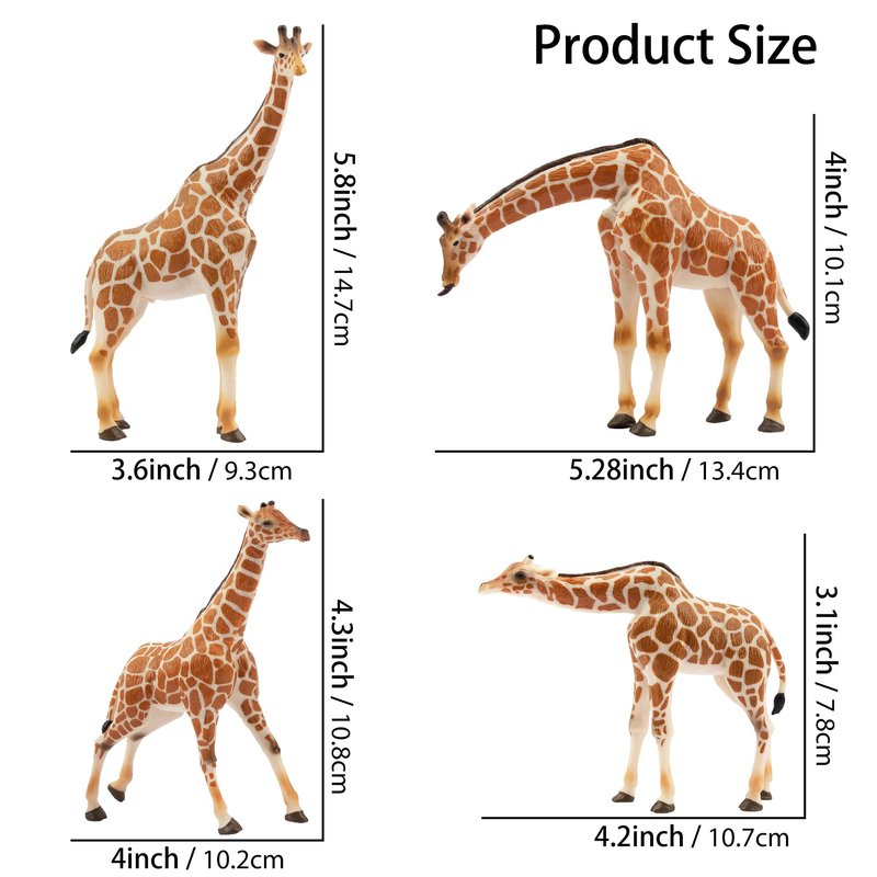 • 4 PCS Giraffe Figurine Set: You will get 2 PCS adult giraffe and 2 PCS giraffe calf. With realistic and vivid action and real colors, it is an ideal figures choice for model scenes.