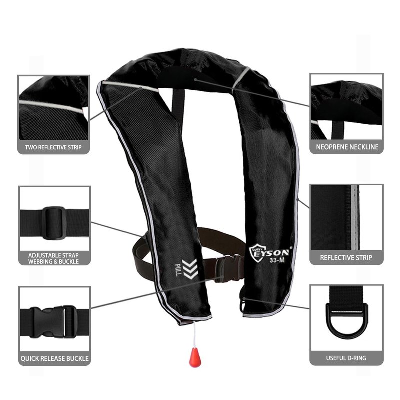 Eyson Inflatable Life Jacket Inflatable Life Vest for Adult Classic Manual (Black)