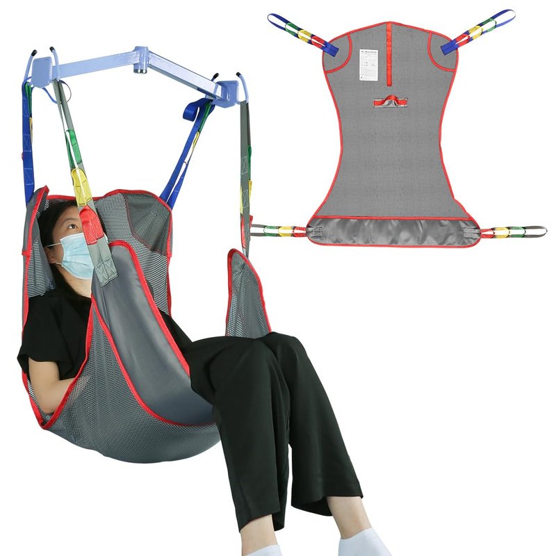 EZ Assistive Full Body Patient Lift Sling was designed for bedridden elderly, and people with mobility difficulties.EZ Assistive patient lift sling was made of lightweight and breathable four points mesh material,but still strong enough to be used without any additional chains or straps,and also protects those patients with sensitive skin while preventing the patient from sliding.We special designed a foam pad in the let support distributes the weight over a larger area,making the transfer sling more comfortable for the user. The handle on the underside of lift slings helps to position the patient easier. The transfer slings can be used as chair lift assist devices for seniors.EZ Assistive hoyer lift slings can be used to transfer the patient from a bed to a wheelchair, recliner, sofa, toilet, bath tub or shower seat, or from the floor to bed.EZ Assistive patient lift slings is compatible with most floor and ceiling lifters and supports up to 500lbs (230kgs).It is a smart choice to use EZ Assistive hoyer lift slings as patient lift for home.