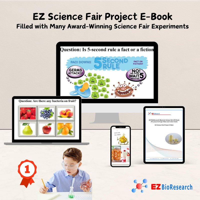 EZ BioResearch Bacteria Science Kit (IV) (Gift Pack): Prepoured LB-Agar Plates and Cotton Swabs. Exclusive Free Science Fair Project E-Book Packed with Award Winning Experiments. (IV Gift Pack)